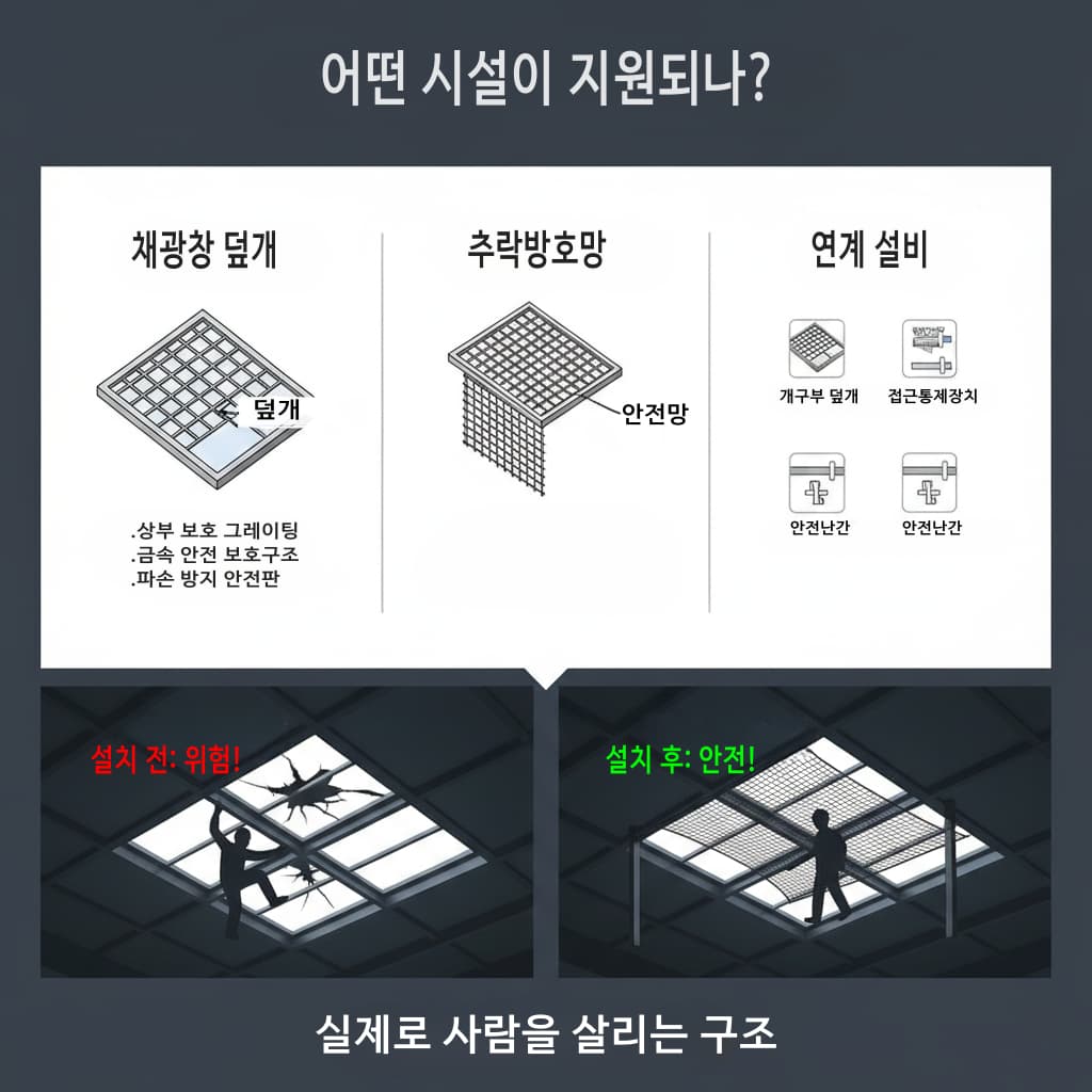 채광창 덮개, 추락방호망 등 추락 예방시설 설치비를 최대 90%까지 지원하는 사업을 확대했다.